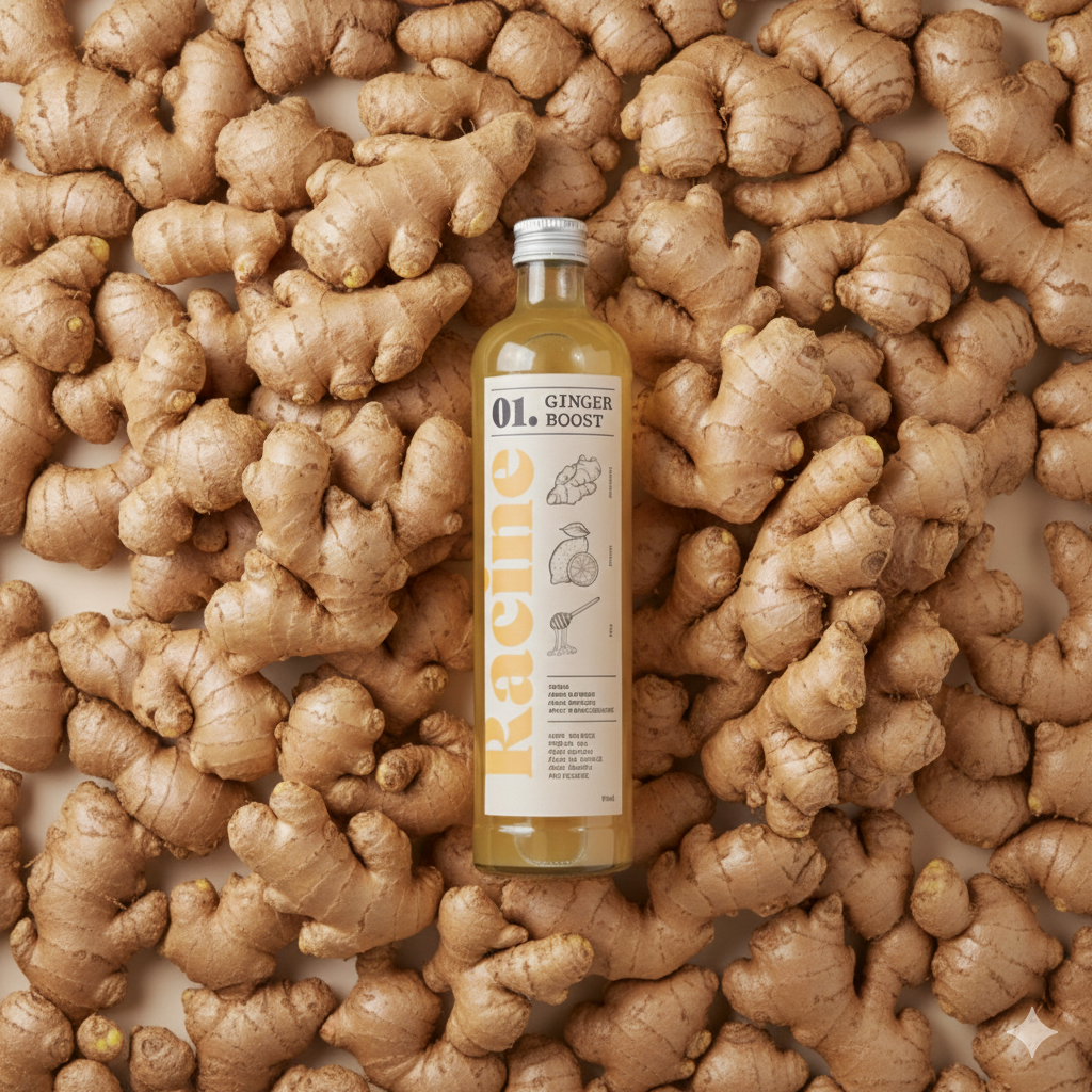 Chez Racine, nous avons redonné au gingembre ce qu'il mérite : du temps, de l'exigence et du savoir-faire. Notre Ginger Boost est une création artisanale française qui concentre l'intensité du gingembre bio, relevée de citron frais et subtilement adoucie par du miel d'exception.