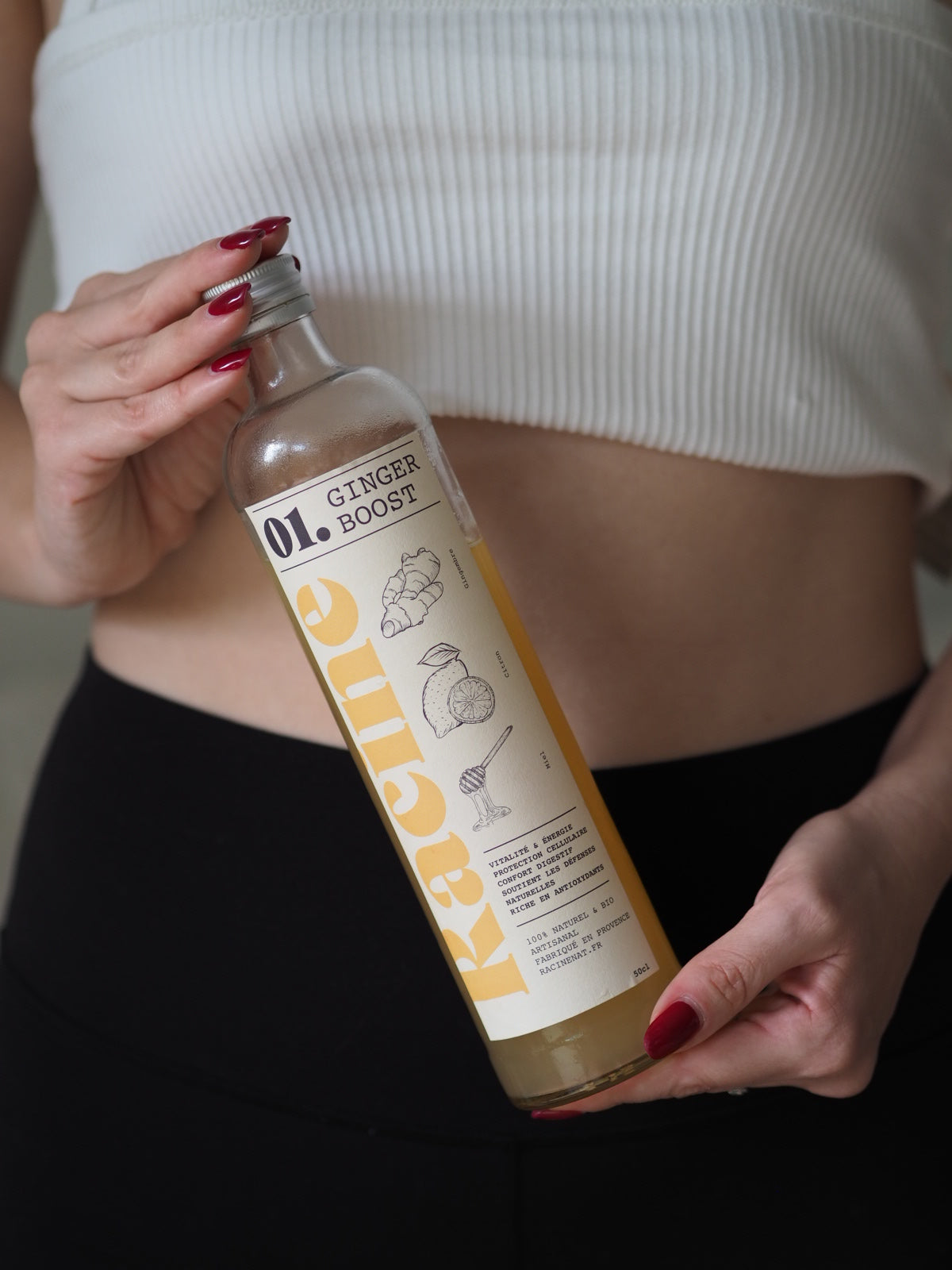 Tout a commencé dans notre petit atelier à Hyères. Ma maman Isabelle et moi, à quatre mains, nous découpions chaque morceau de gingembre, préparions chaque décoction, remplissions chaque bouteille, collions chaque étiquette. Chaque geste était le nôtre, chaque produit portait littéralement notre empreinte.